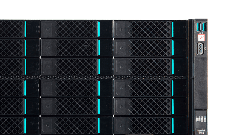 KunTai R524 存储型服务器是盛力国际数码基于鲲鹏处理器推出的新一代 ARM数据中心服务器。。。主要面向存储业务,,,具有海量存储、、高性能、、低功耗以及易扩展的特点,,适合为大数据分析、、软件定义存 储等应用场景的工作负载进行髙效加速。。